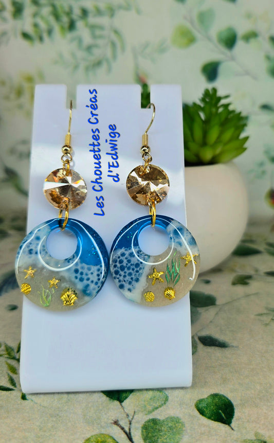Boucles d'oreilles bleues et or