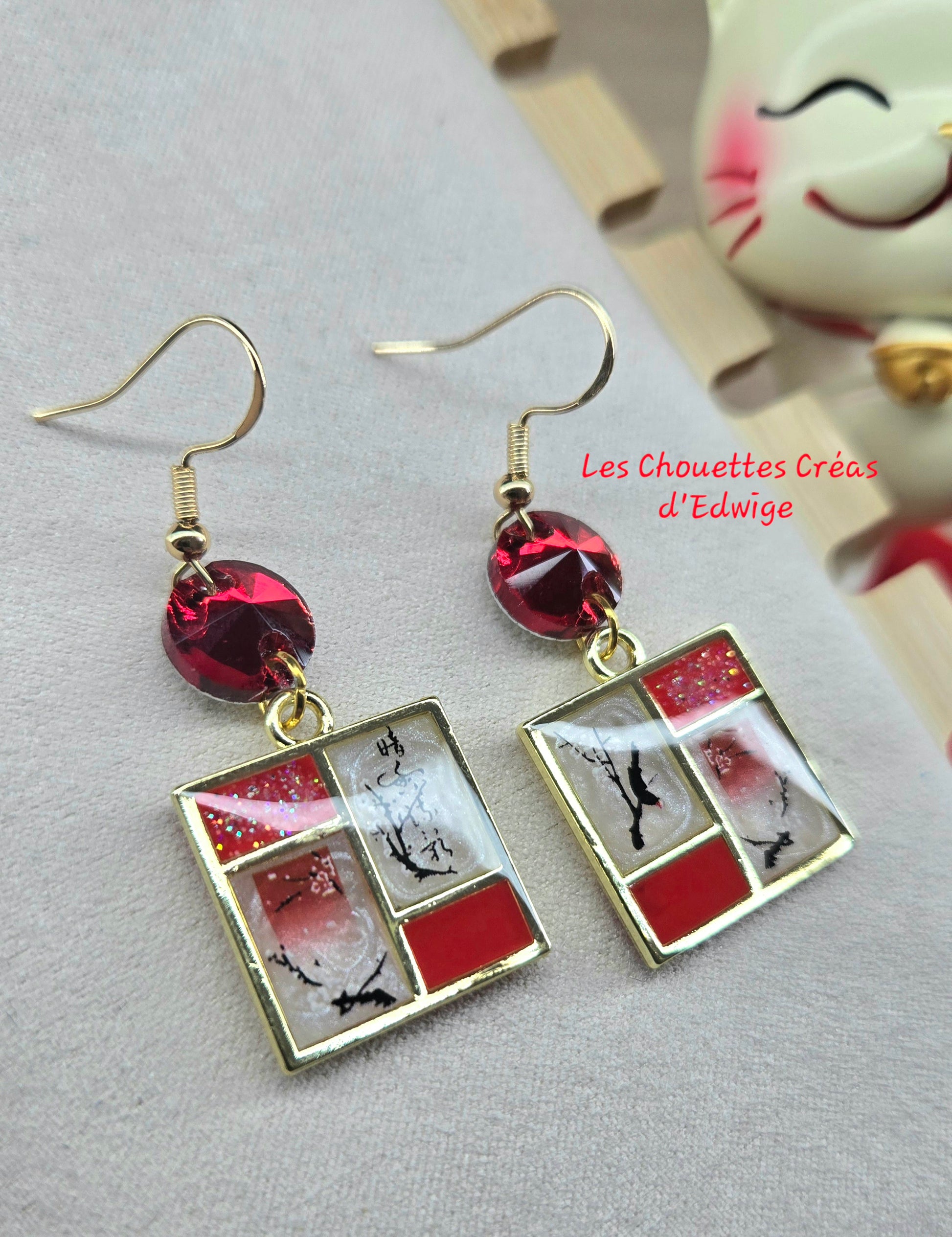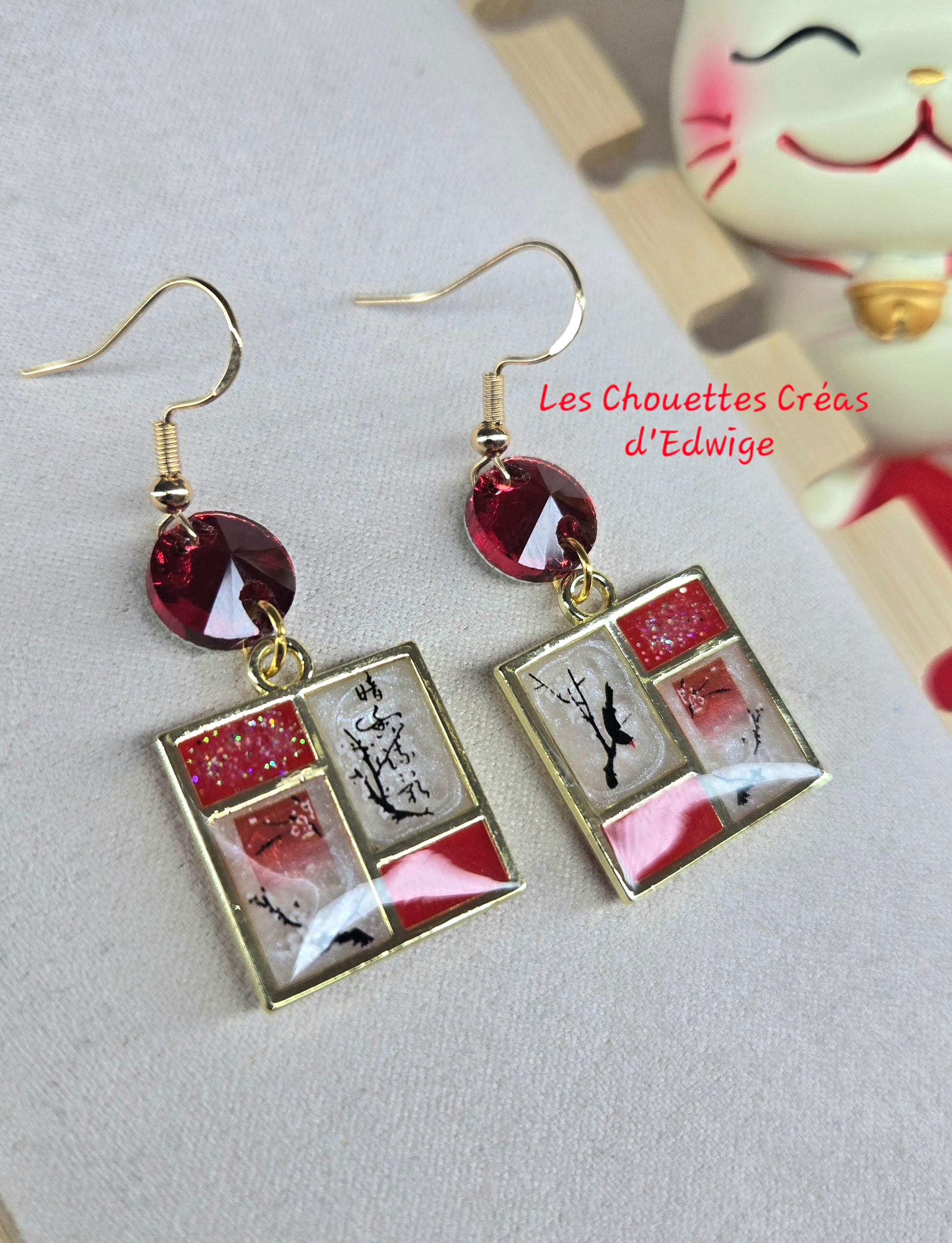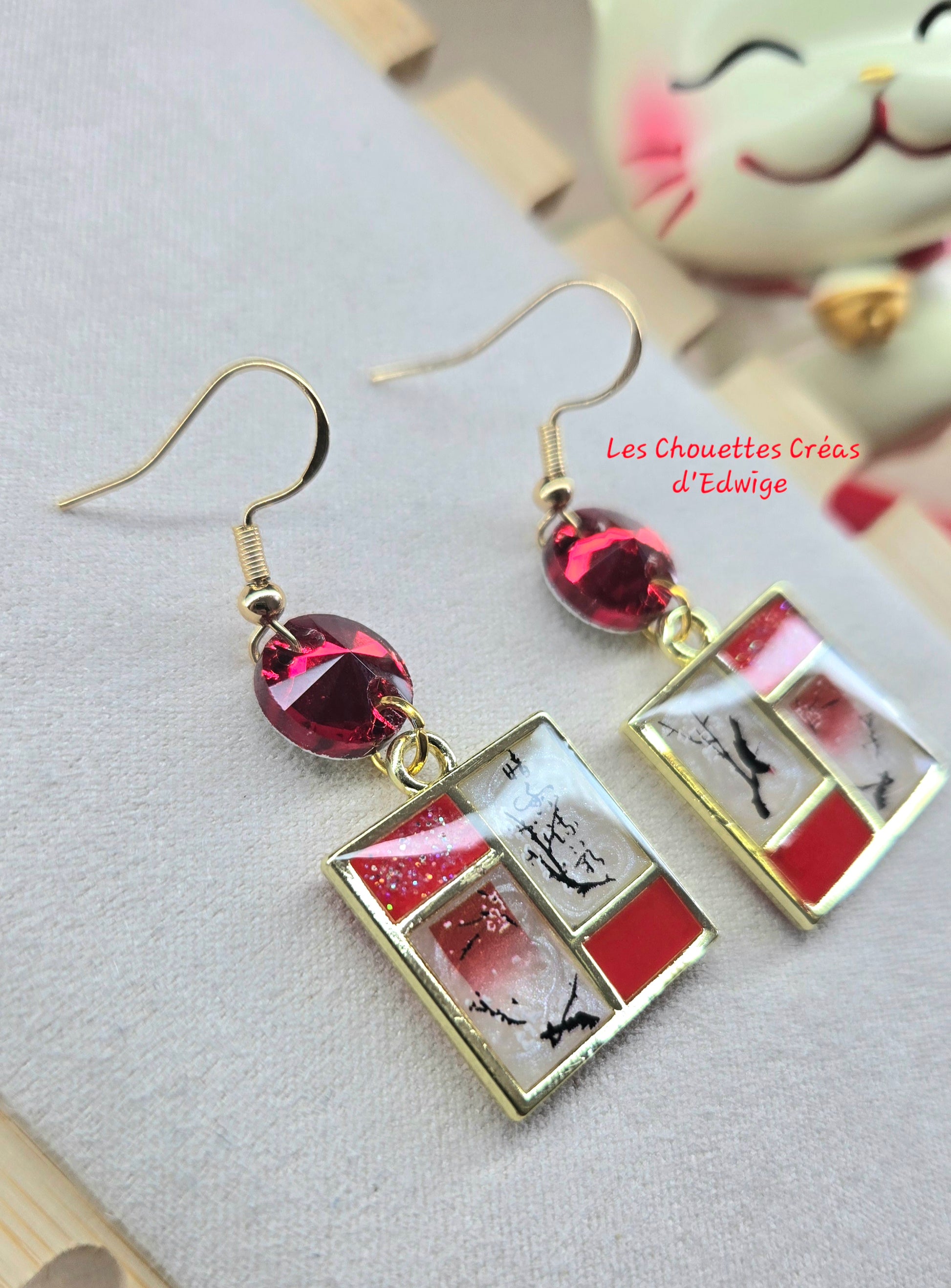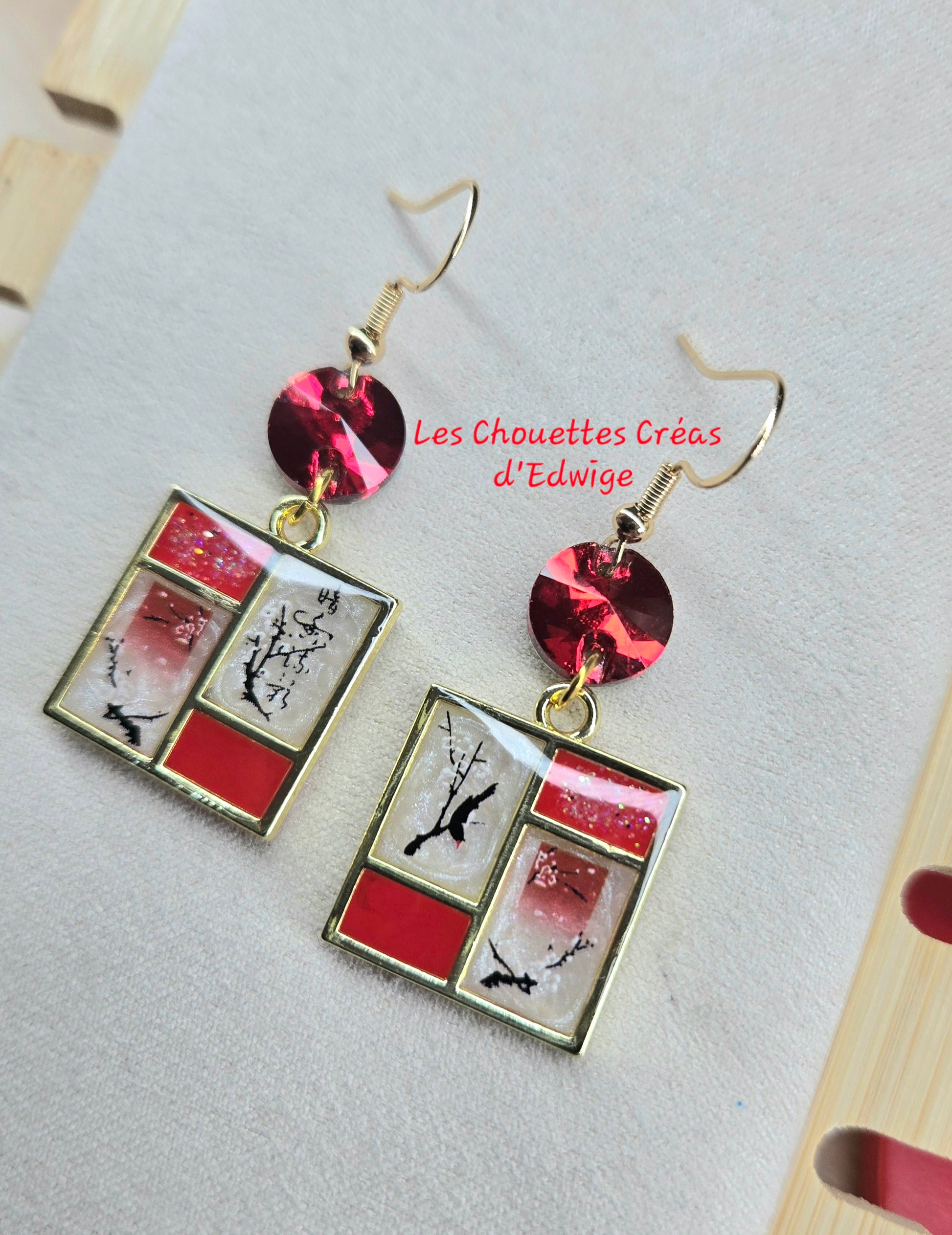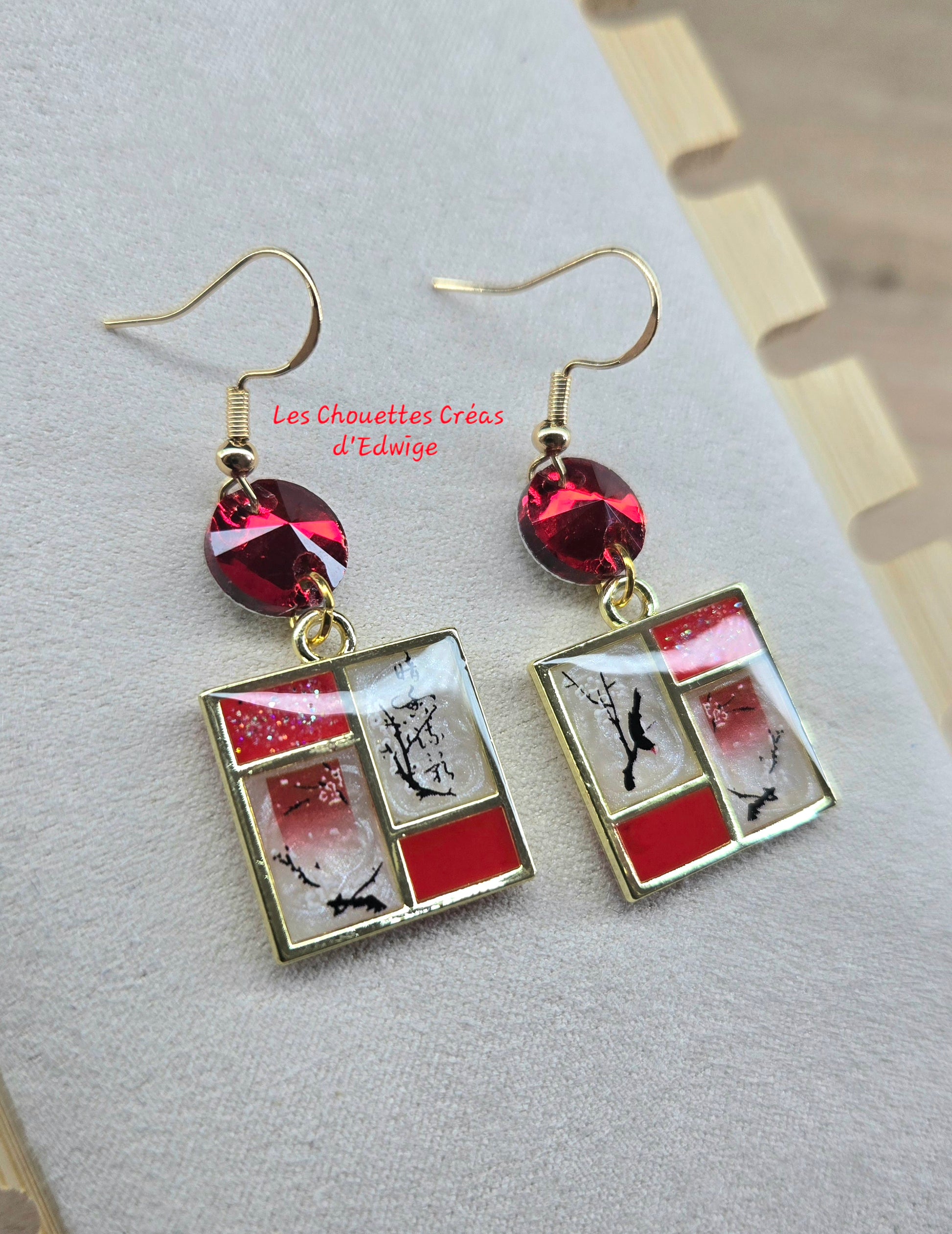 Boucles d'oreilles pendantes réalisées à la main et composées de :