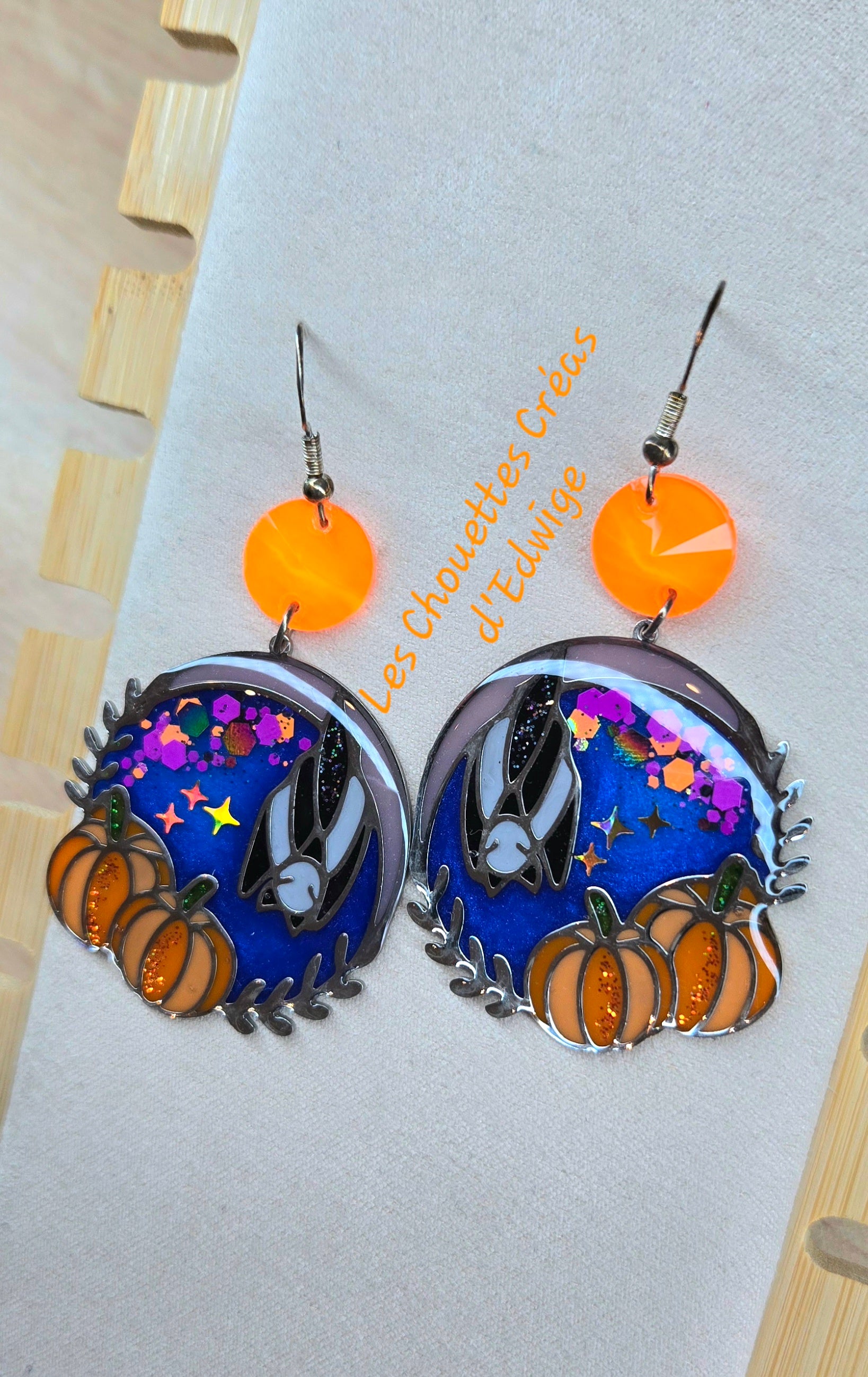 Boucles d'oreilles pendantes réalisées à la main et composées de :