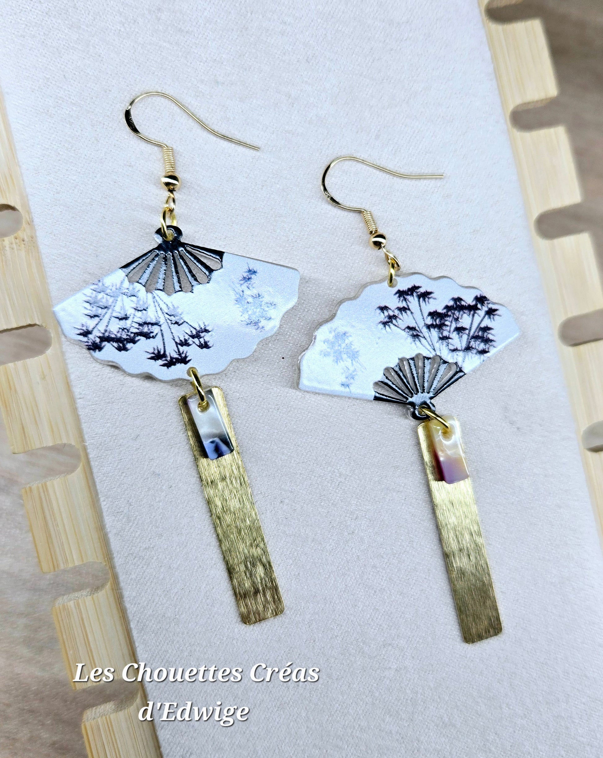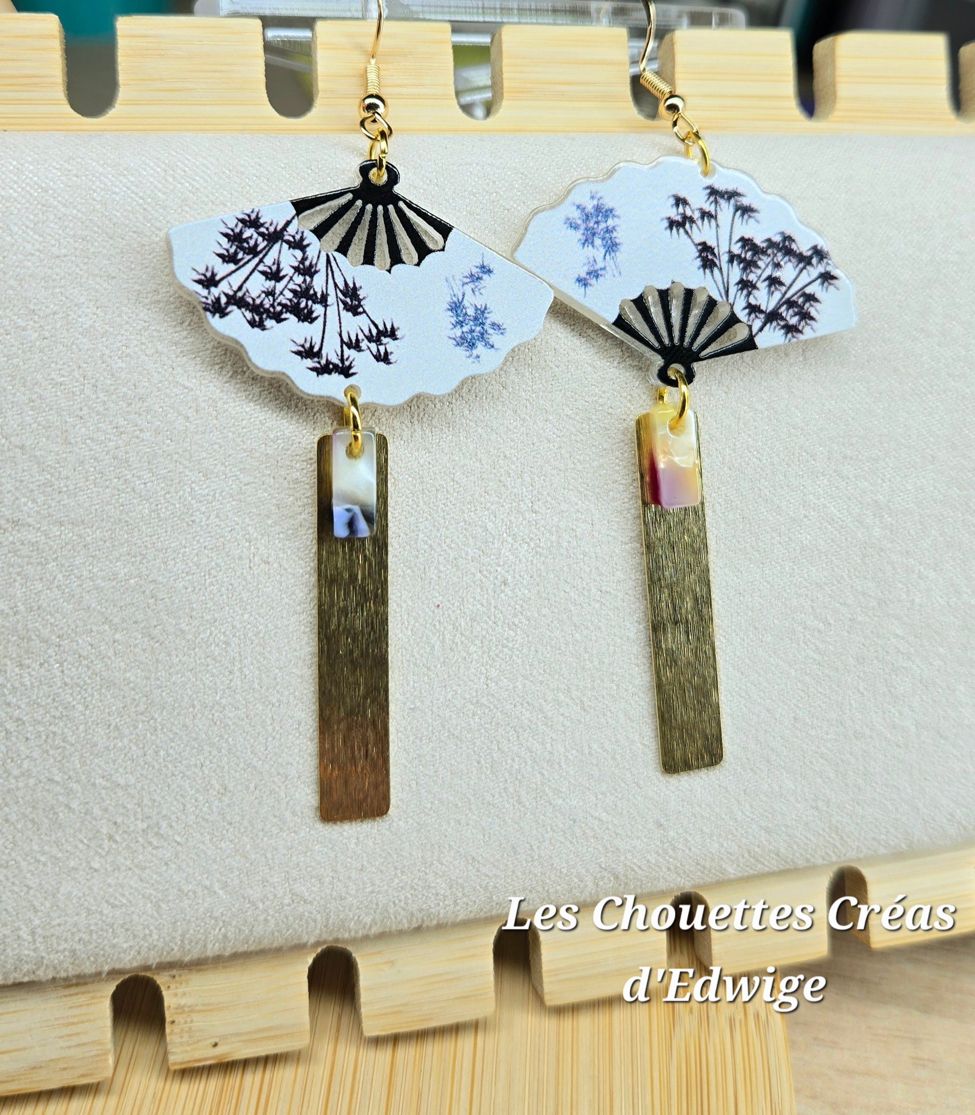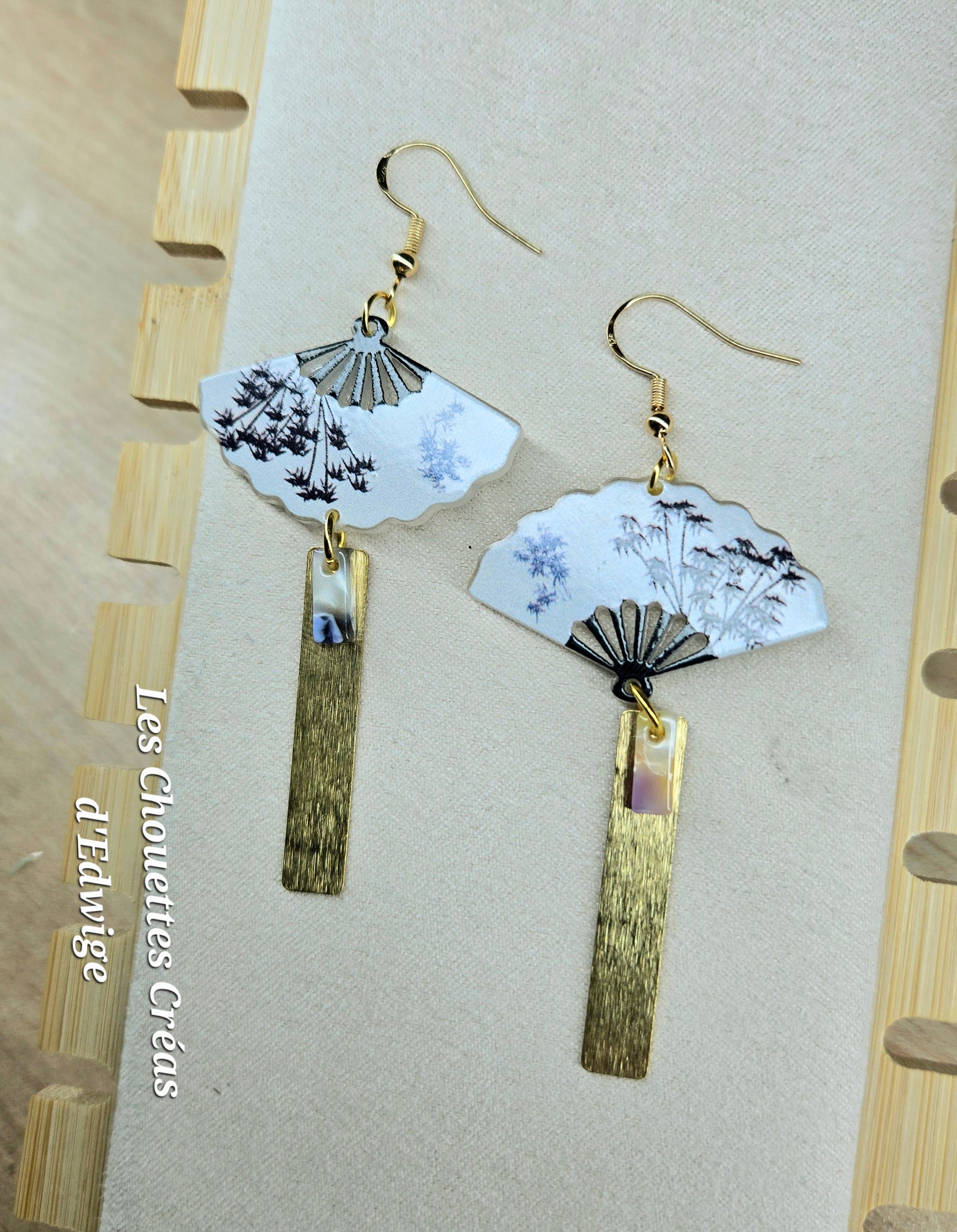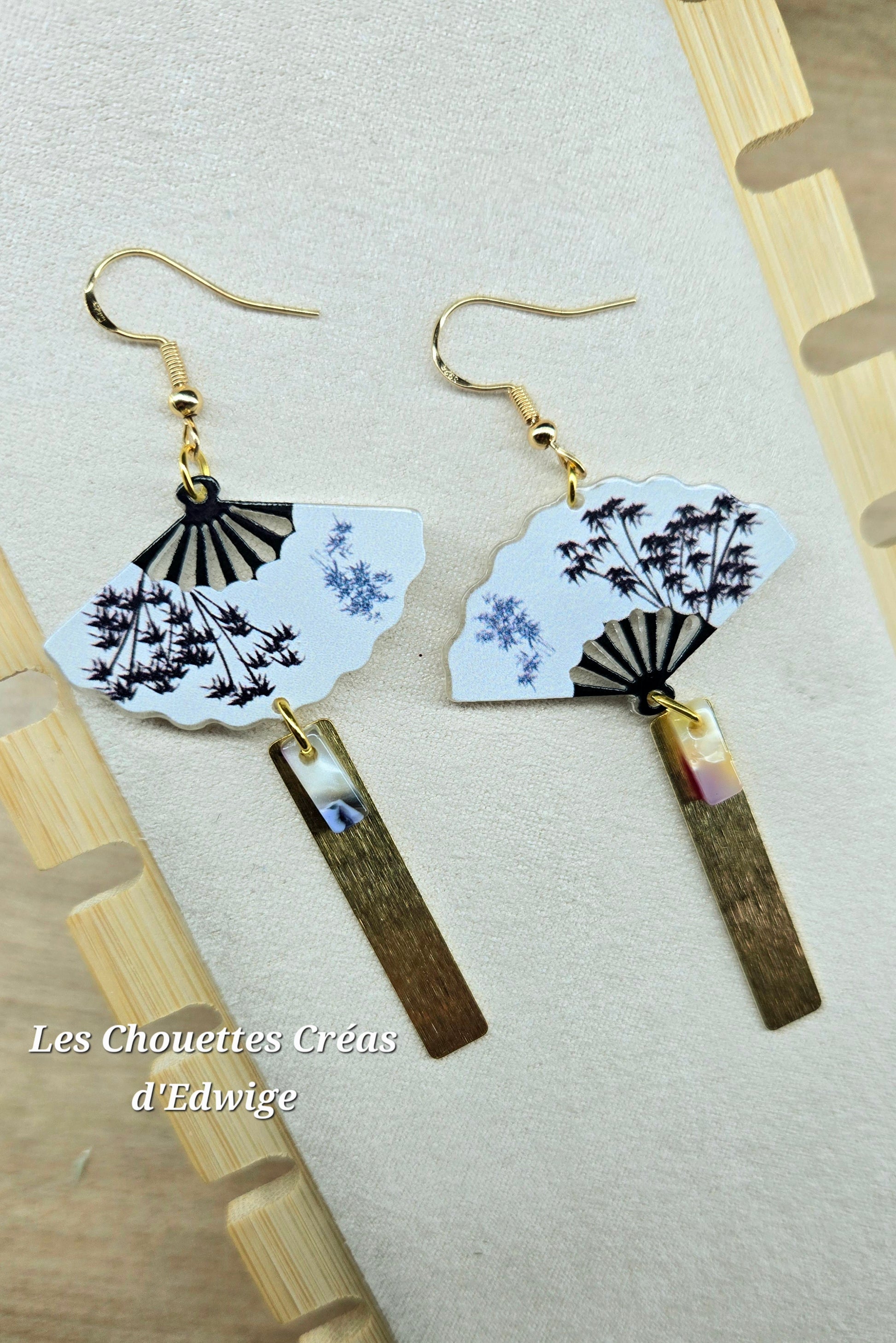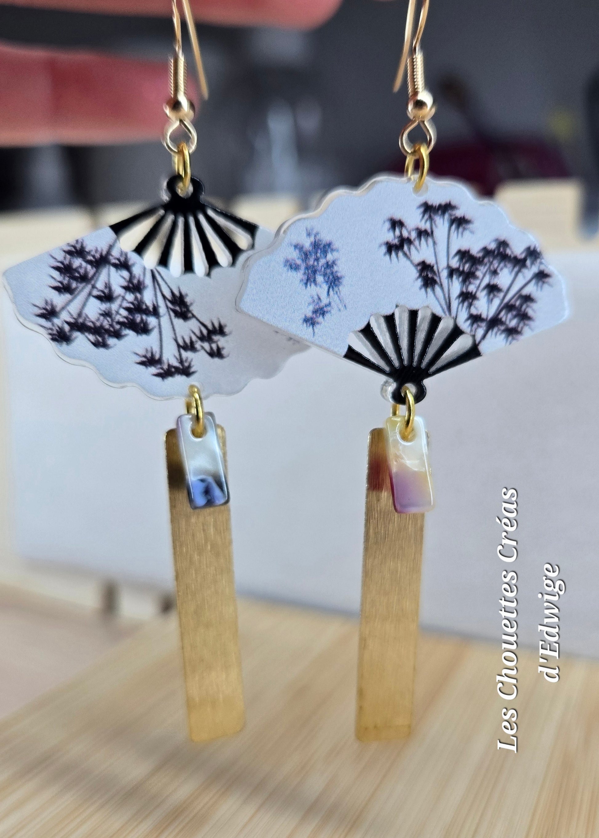 Boucles d'oreilles pendantes réalisées à la main et composées de :