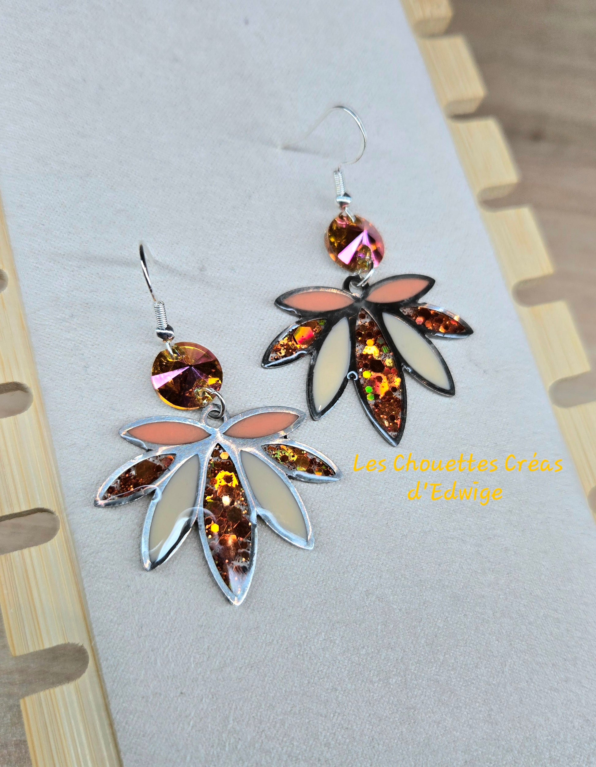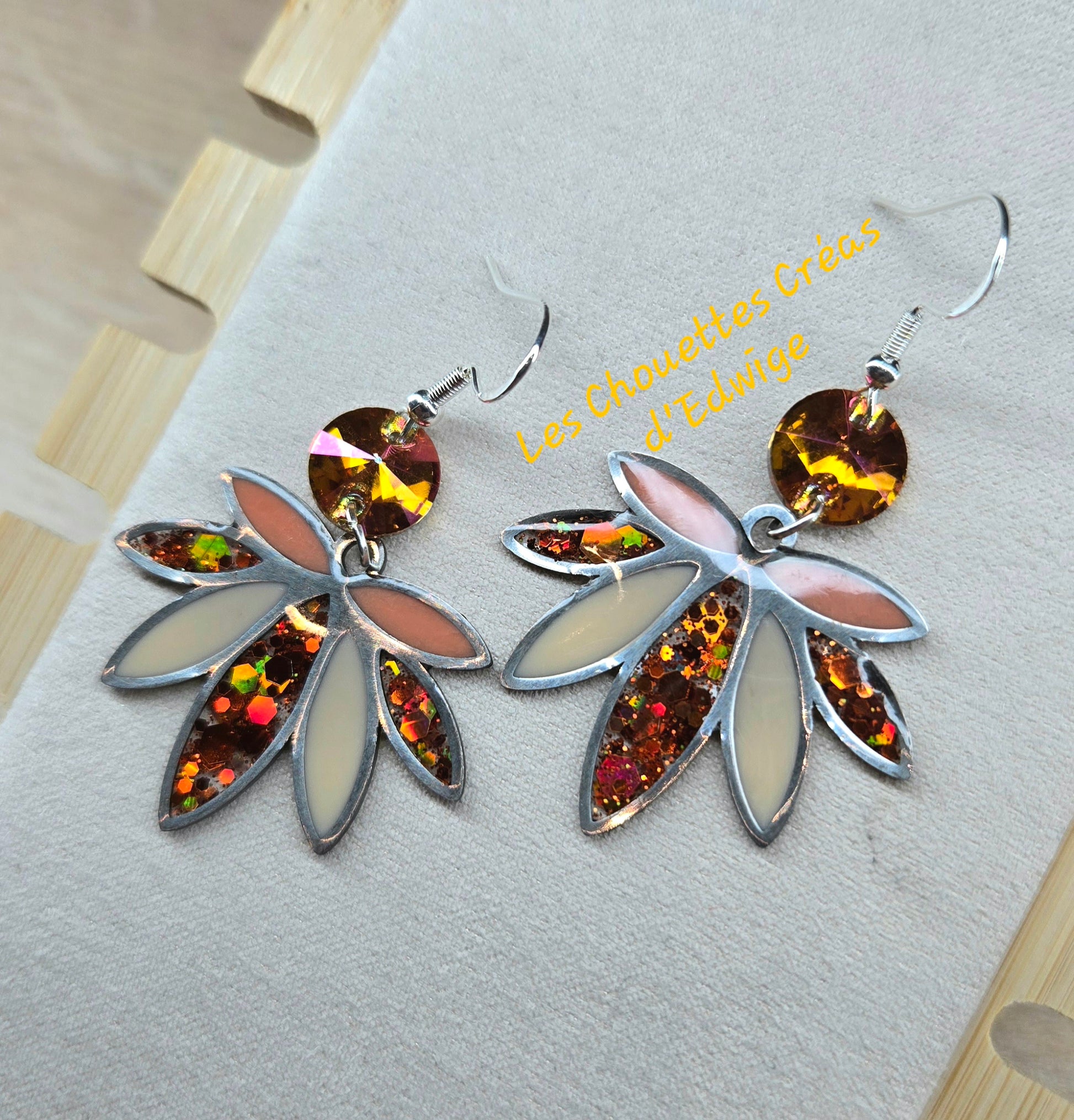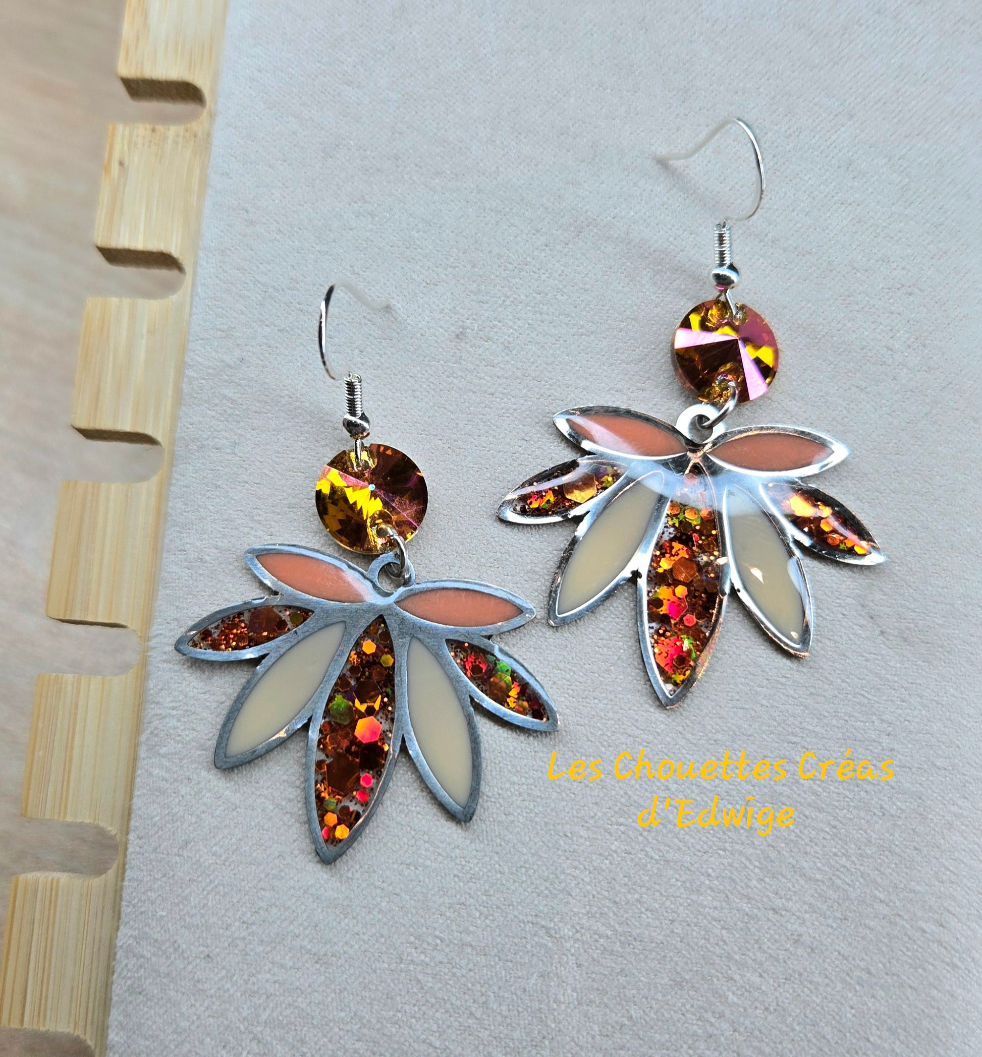 Les reflets des cristaux et des pailletes varient en fonction de l'éclairage et de leur orientation et les couleurs varient en fonction des réglages de luminosité de votre écran. Ces boucles d'oreilles sont encore plus jolies en vrai 💛