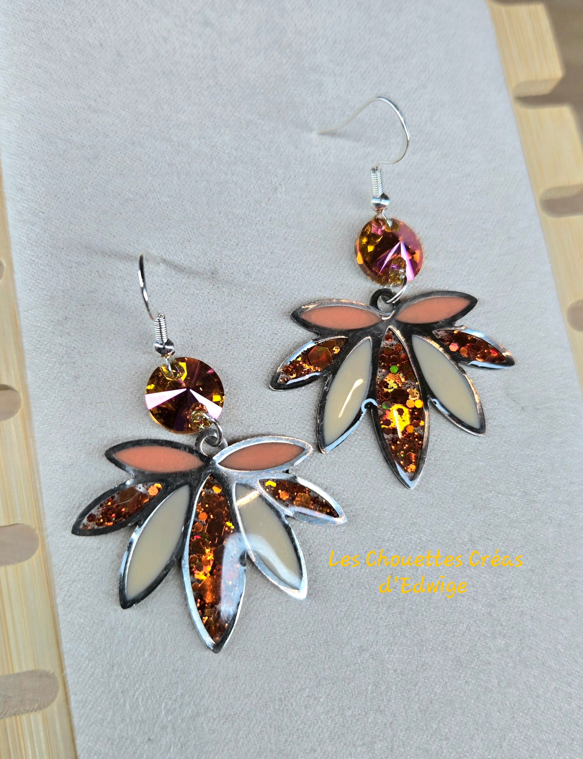 Boucles d'oreilles pendantes réalisées à la main et composées de :