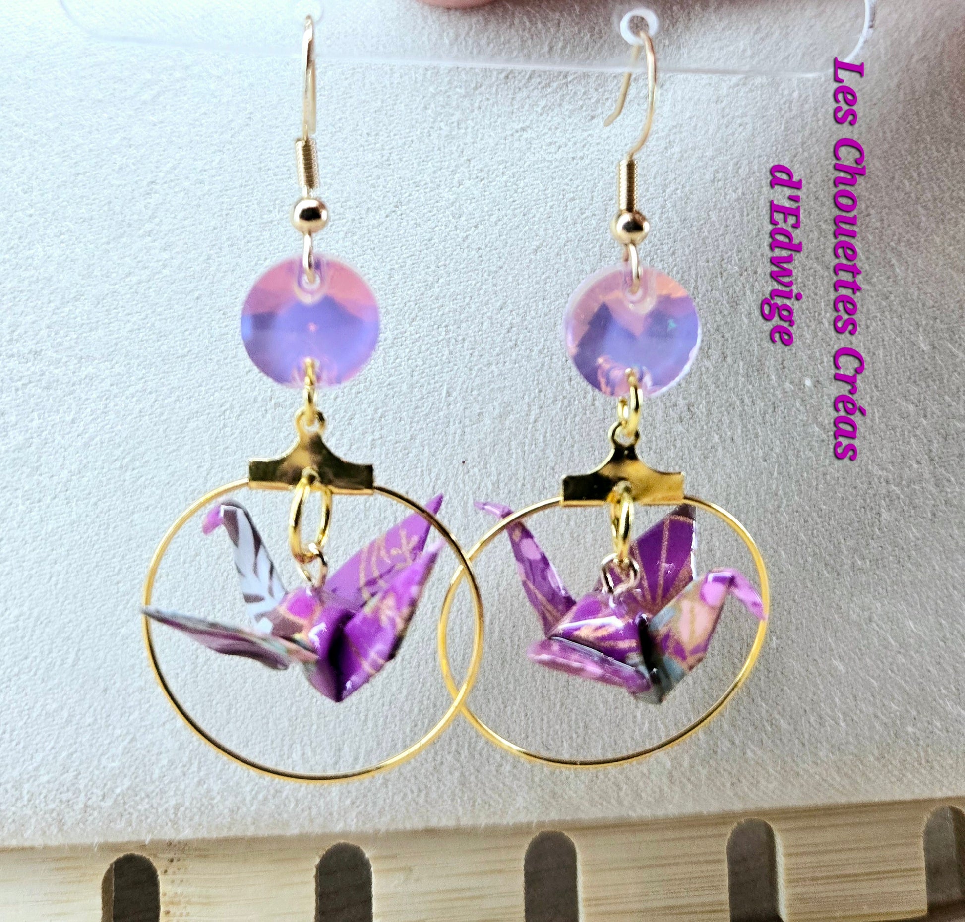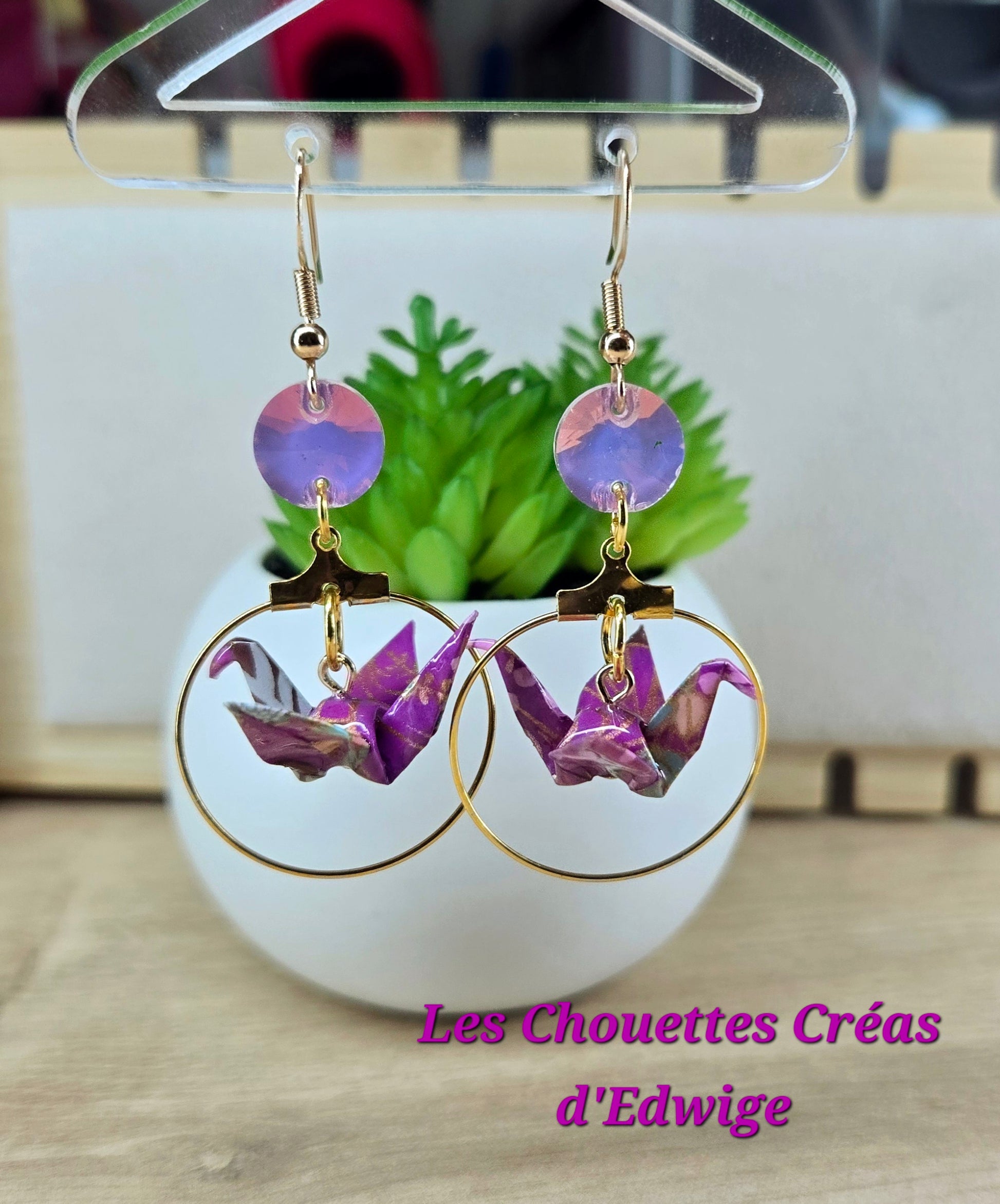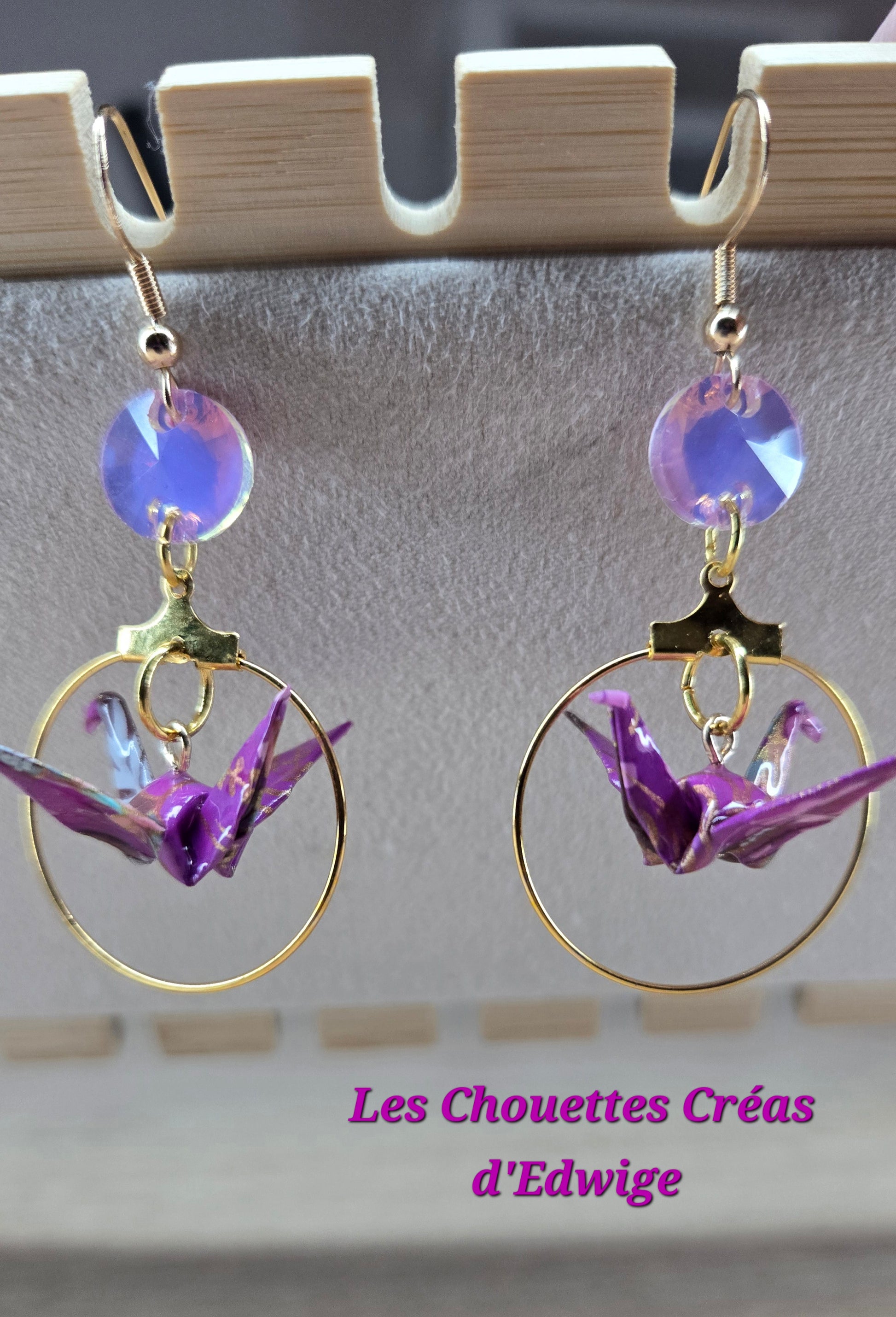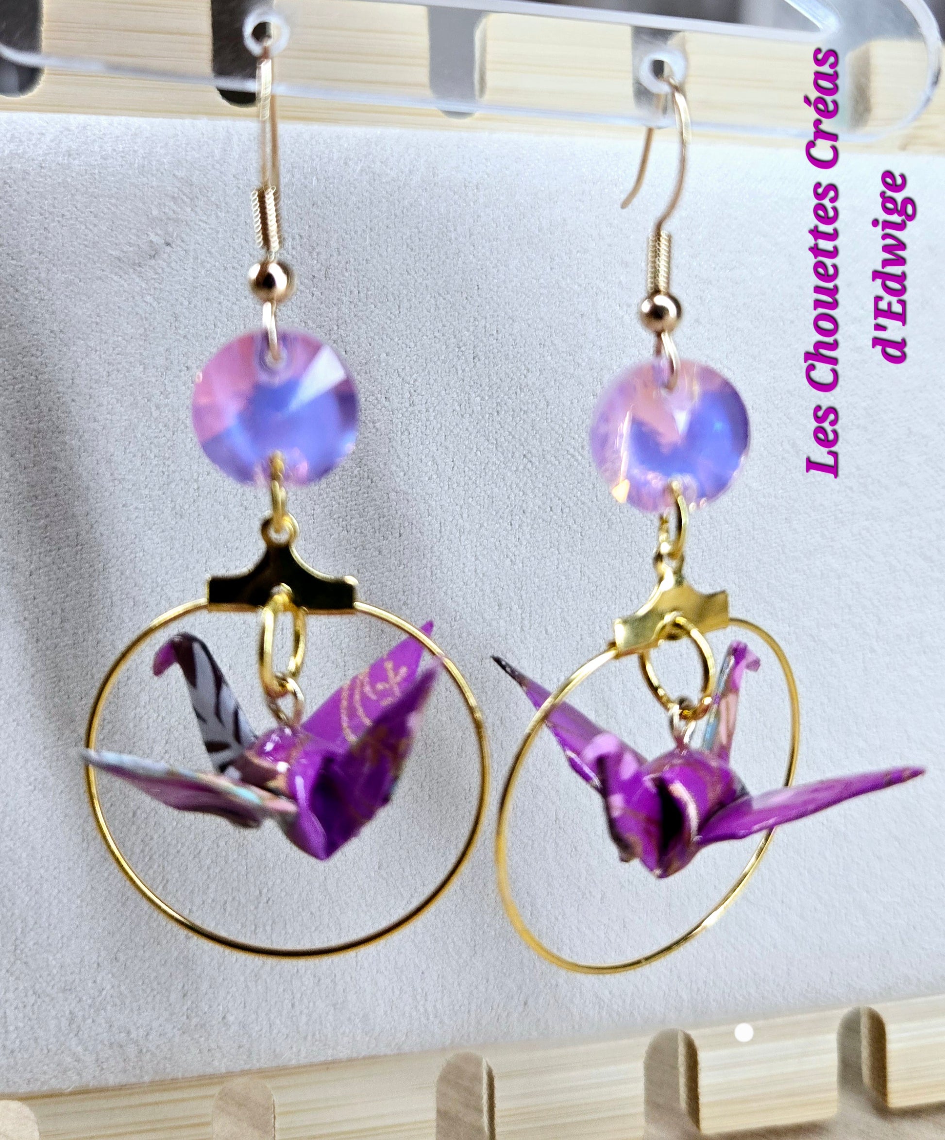 Boucles d'oreilles grues en origami violettes