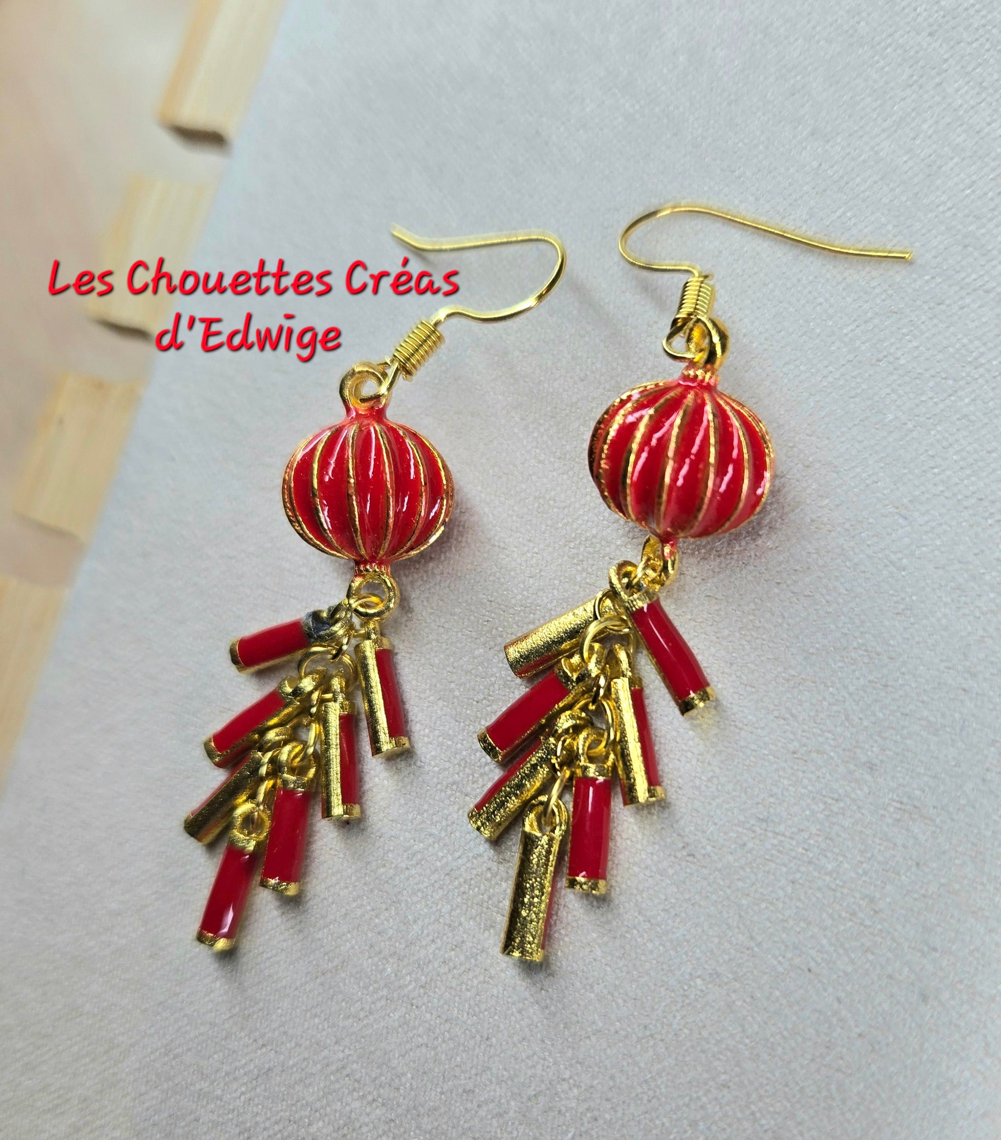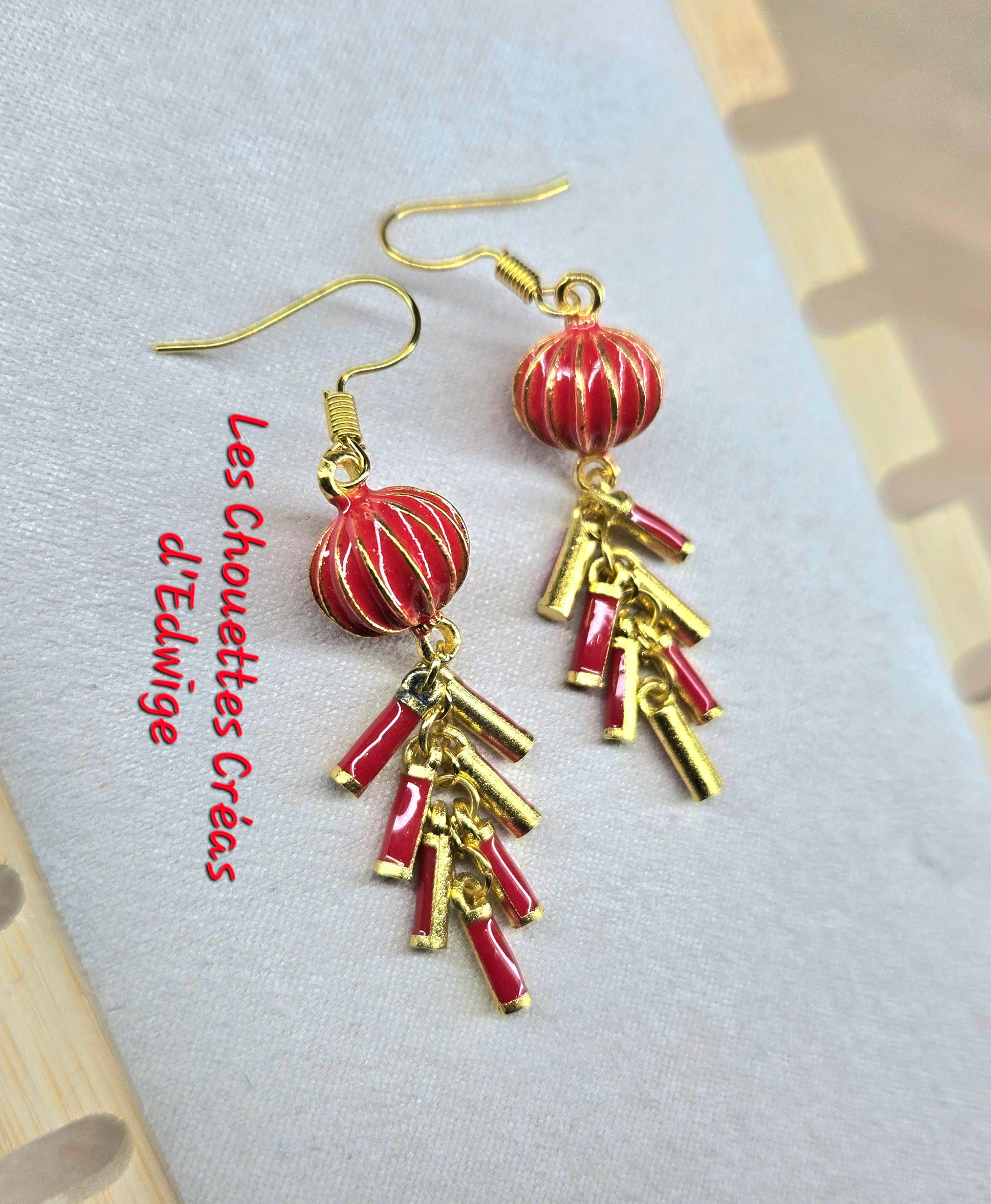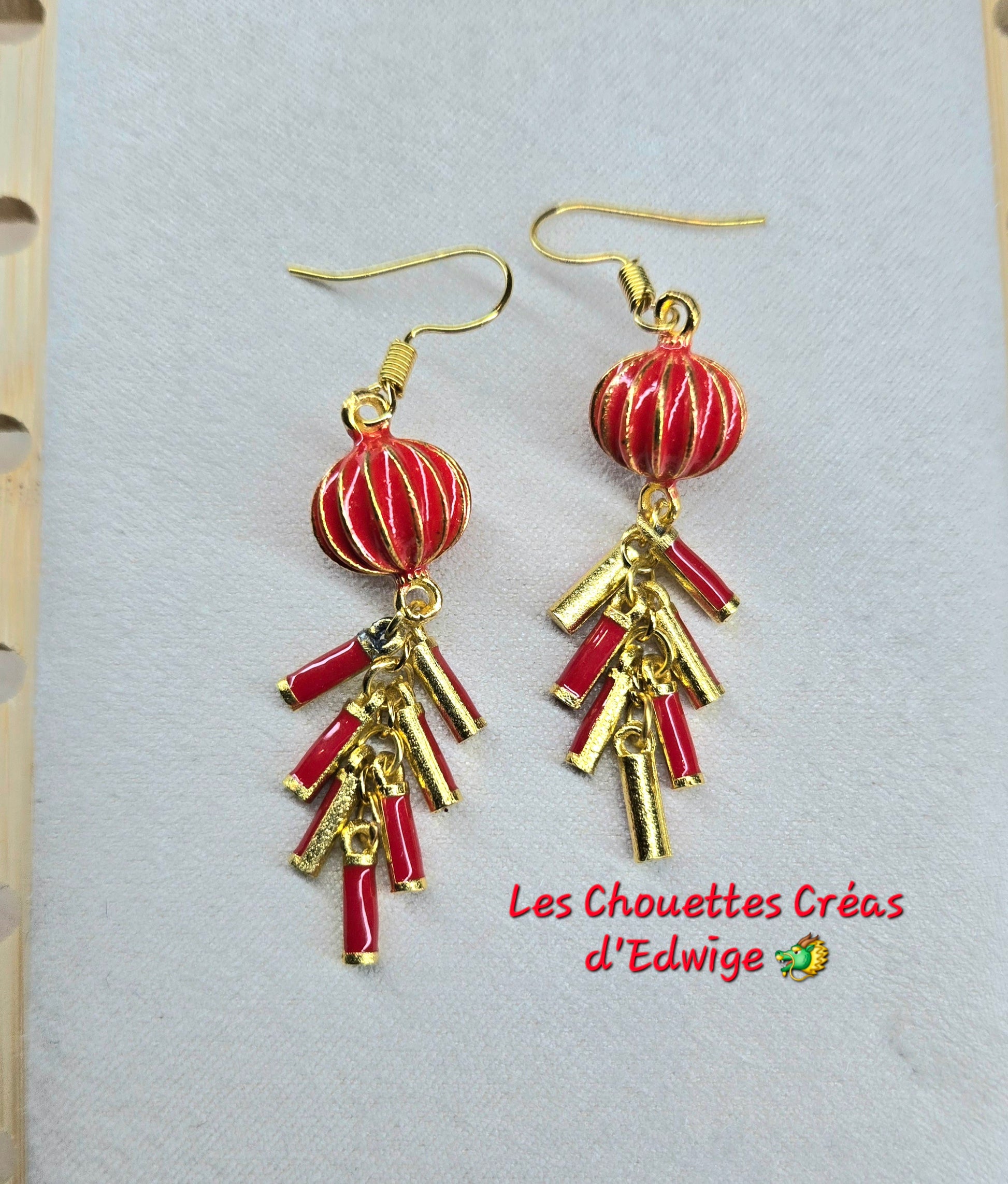 Boucles d'oreilles pendantes réalisées à la main et composées de :