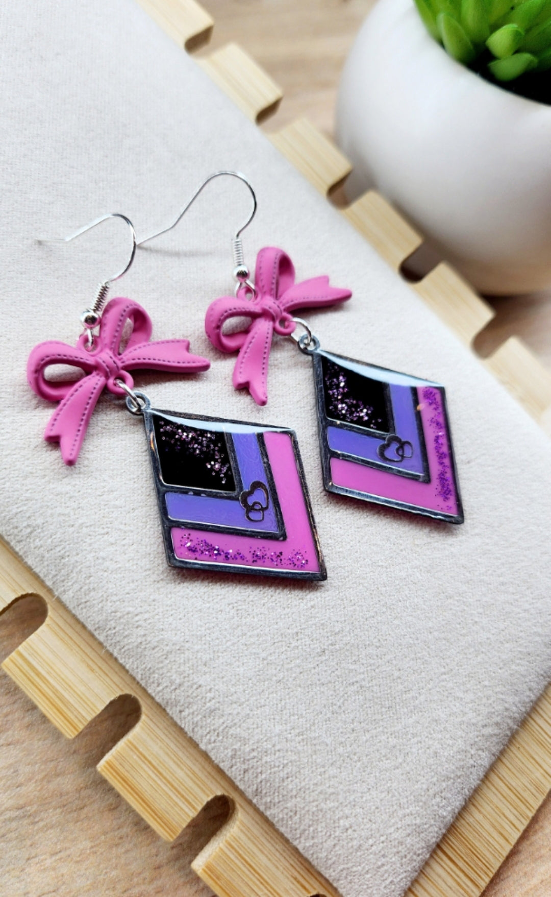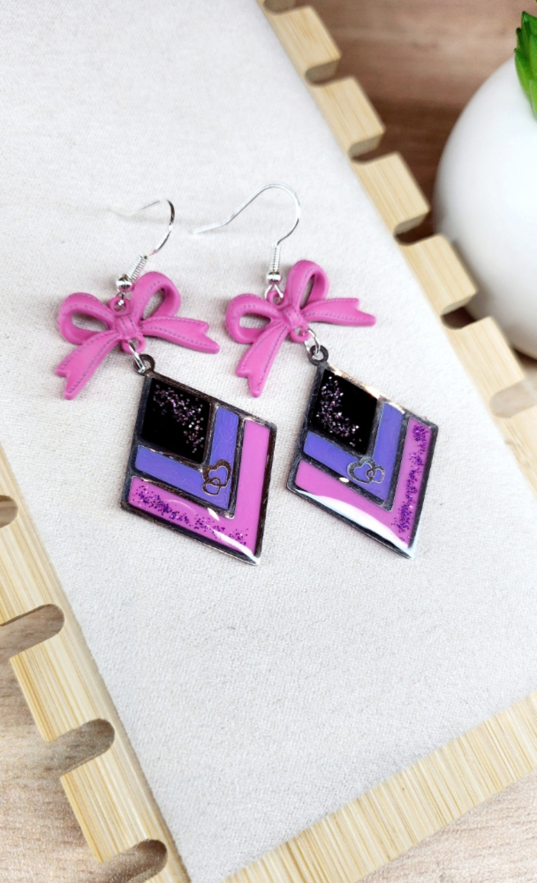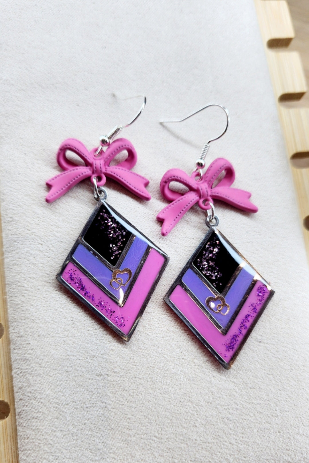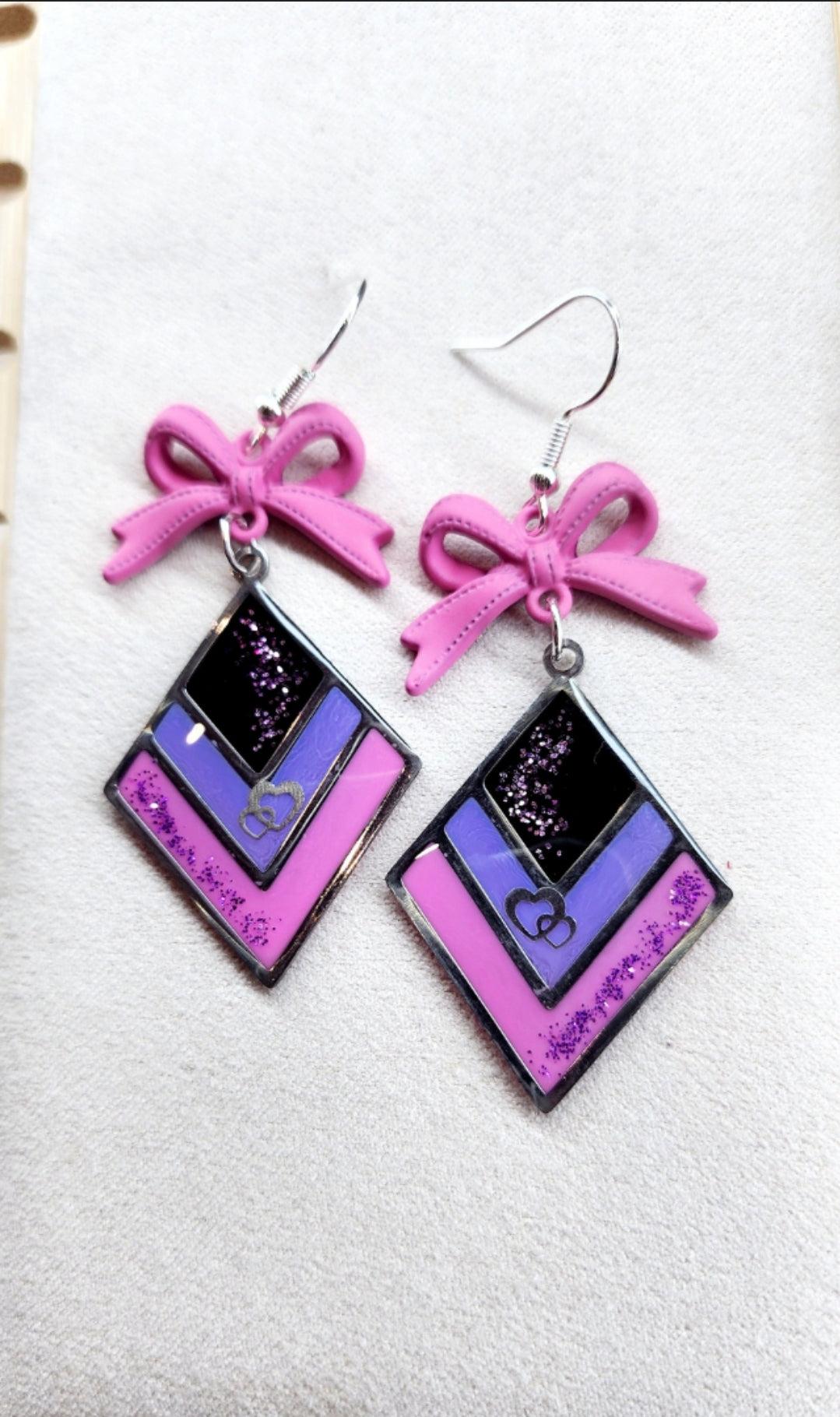 - Pendentifs en forme de losange de 35 mm dans lesquels j'ai inséré de la résine de plusieurs couleurs et des paillettes.