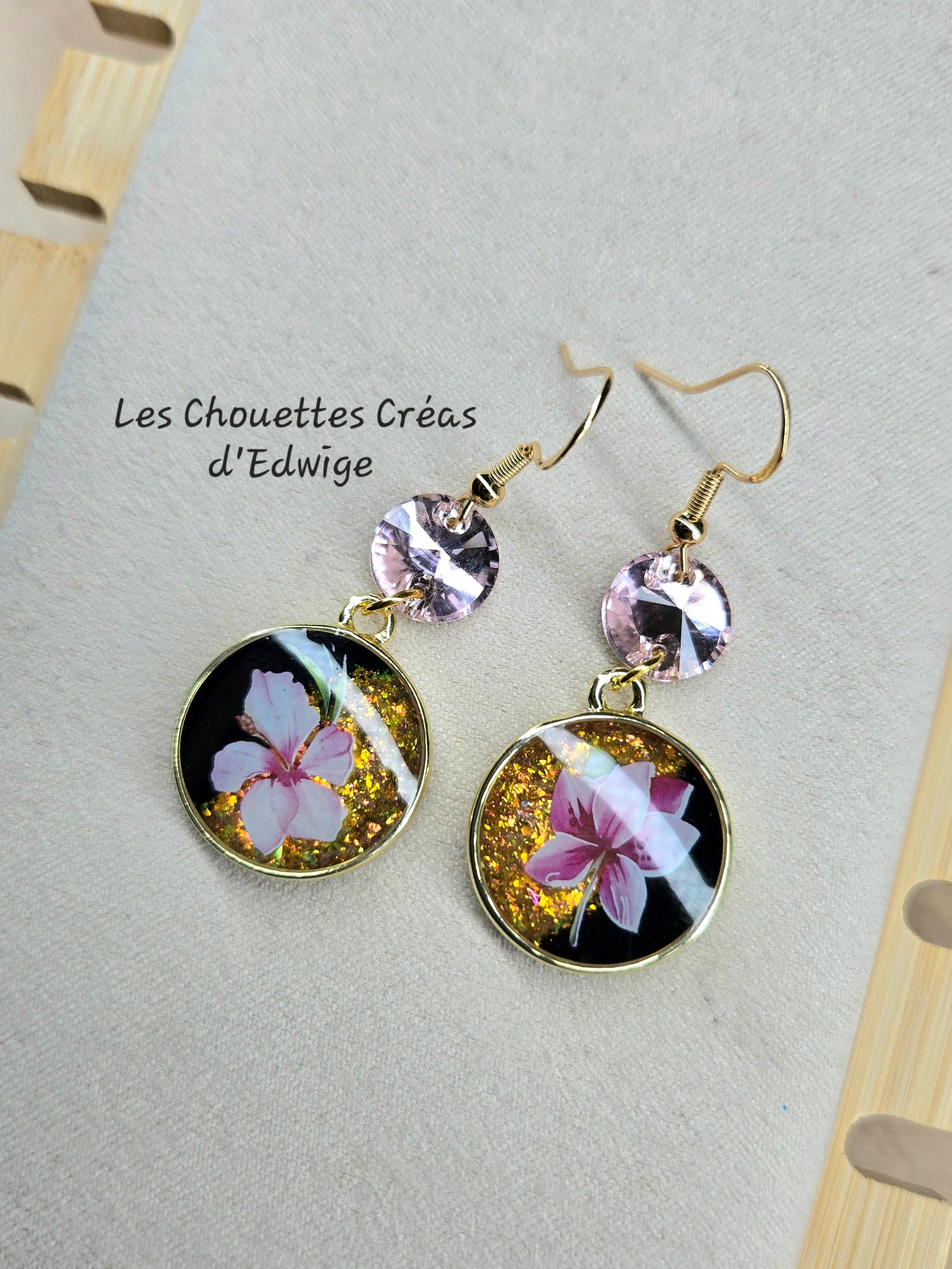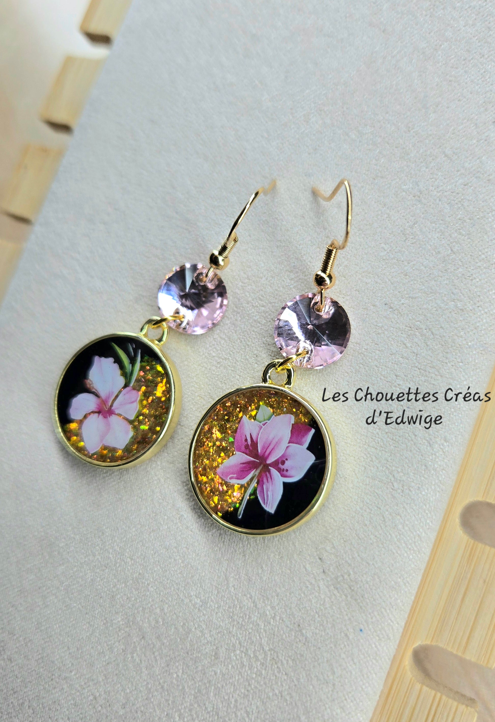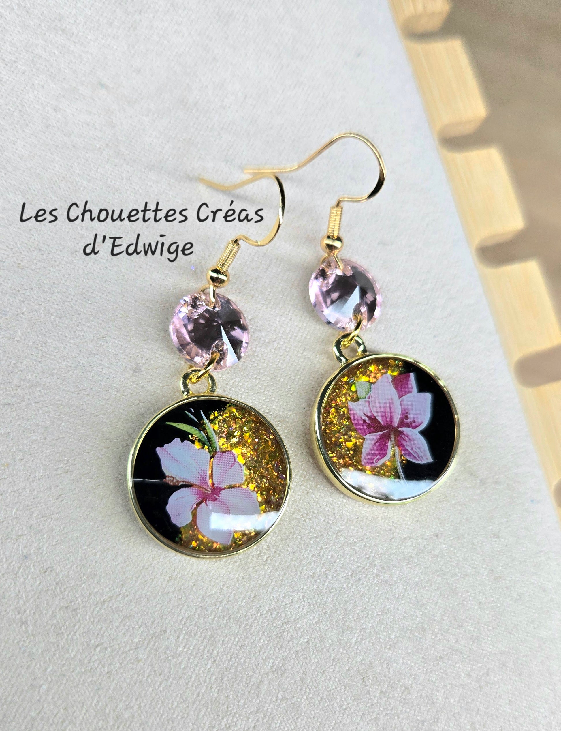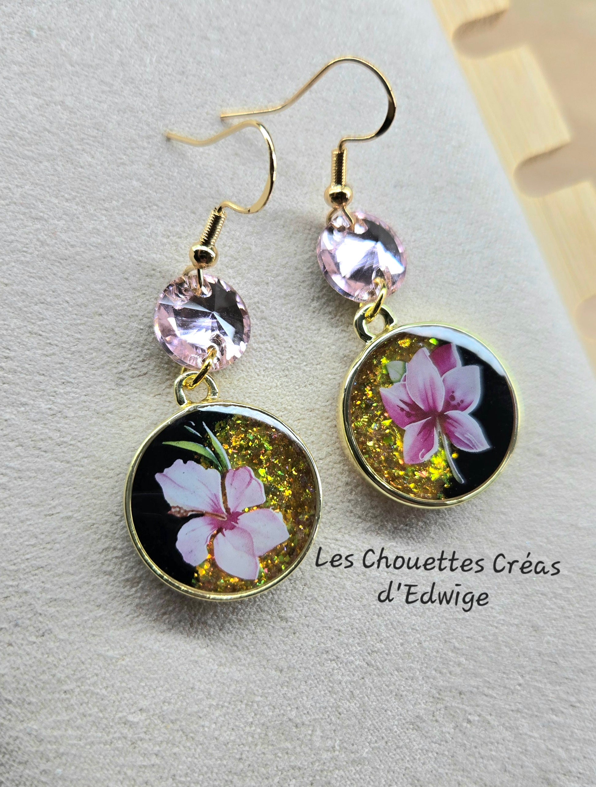 - Pendentifs ronds de 21 mm avec résine, paillettes et décors fleuris 🖤