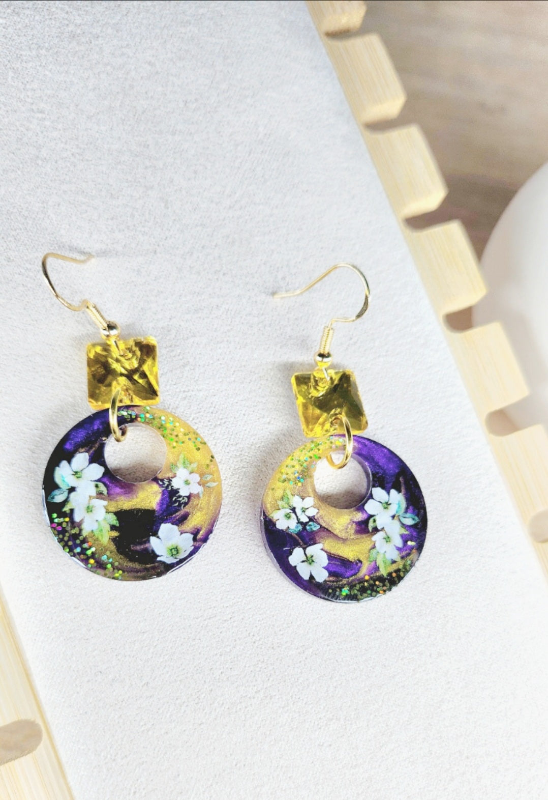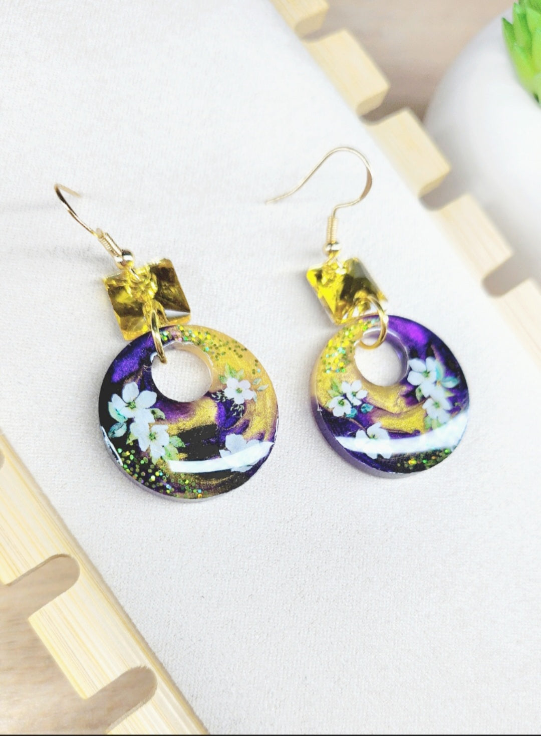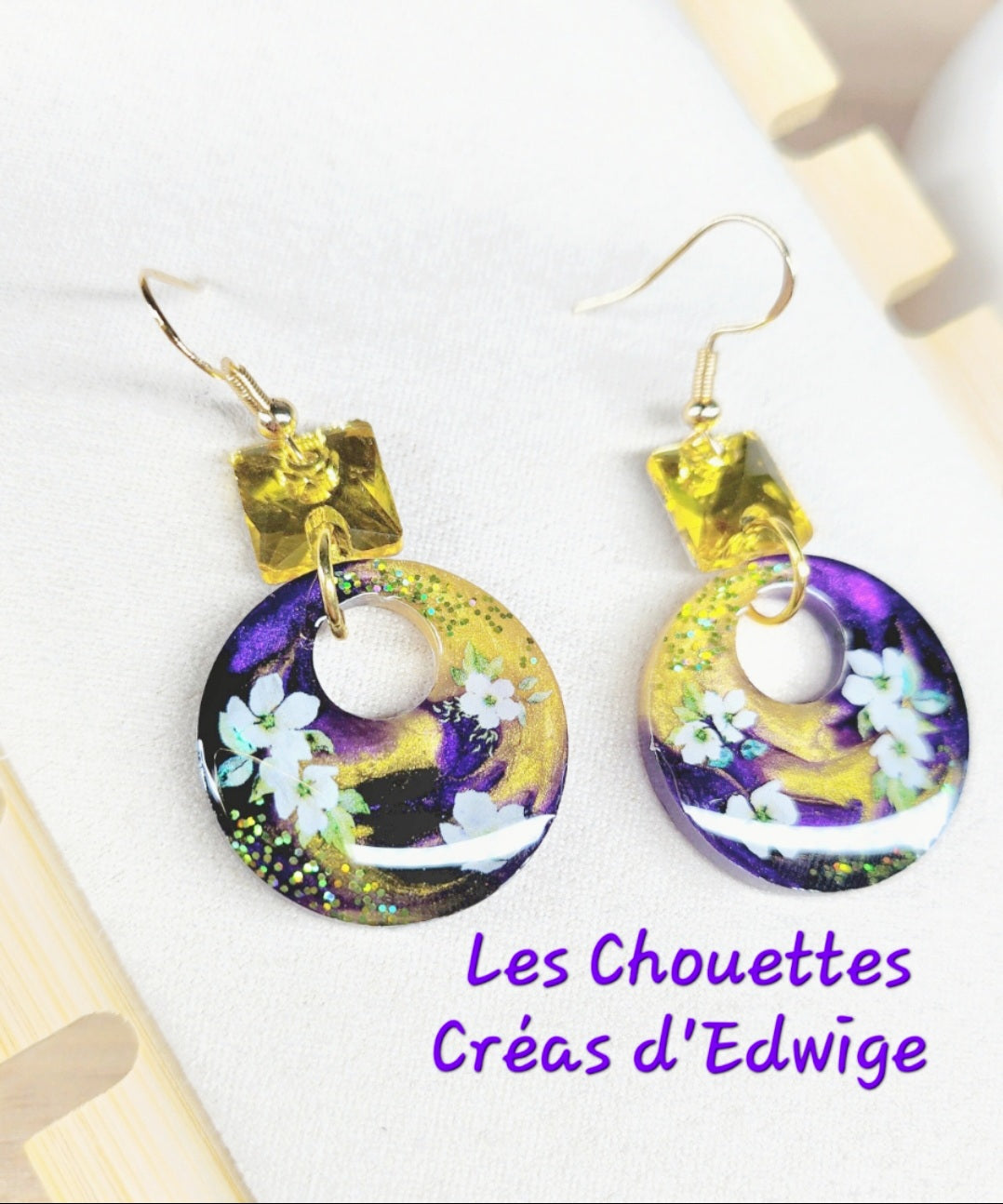 - Créoles 100% résine avec paillettes et décors floraux. Chaque modèle est unique !