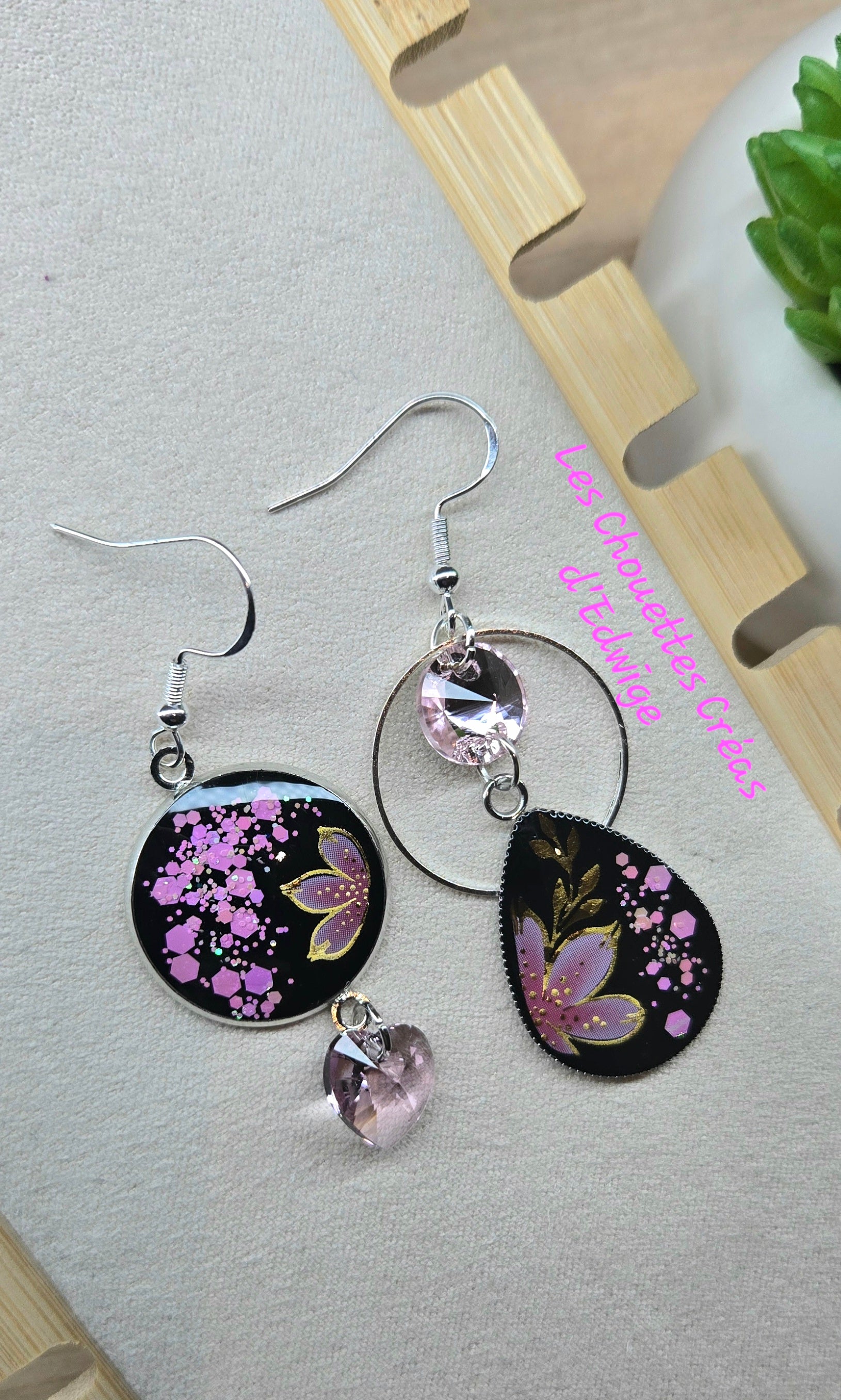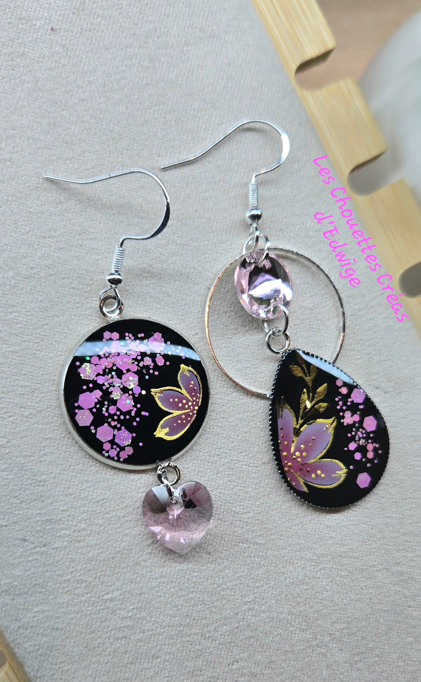 Boucles d'oreilles fleuries dépareillées