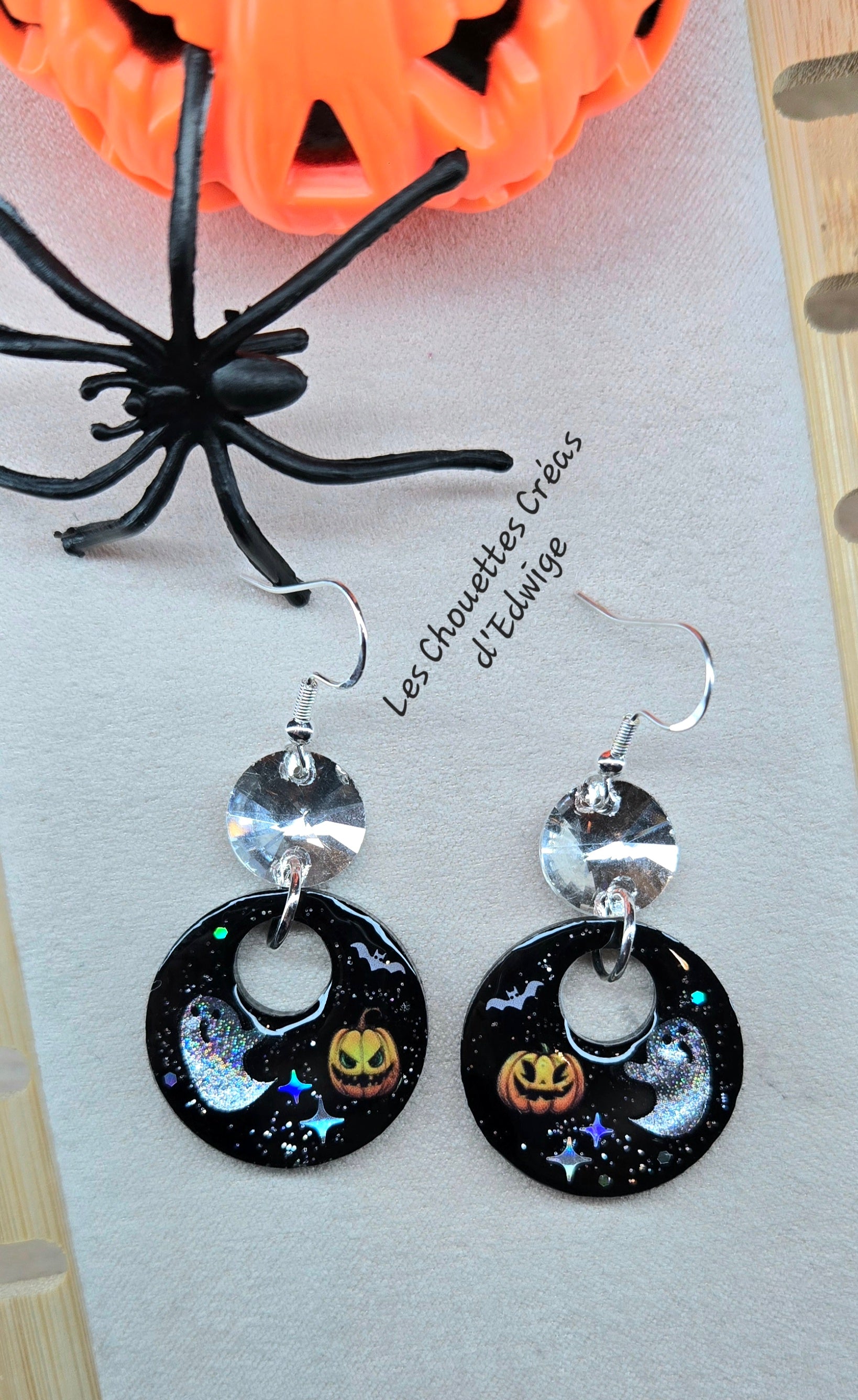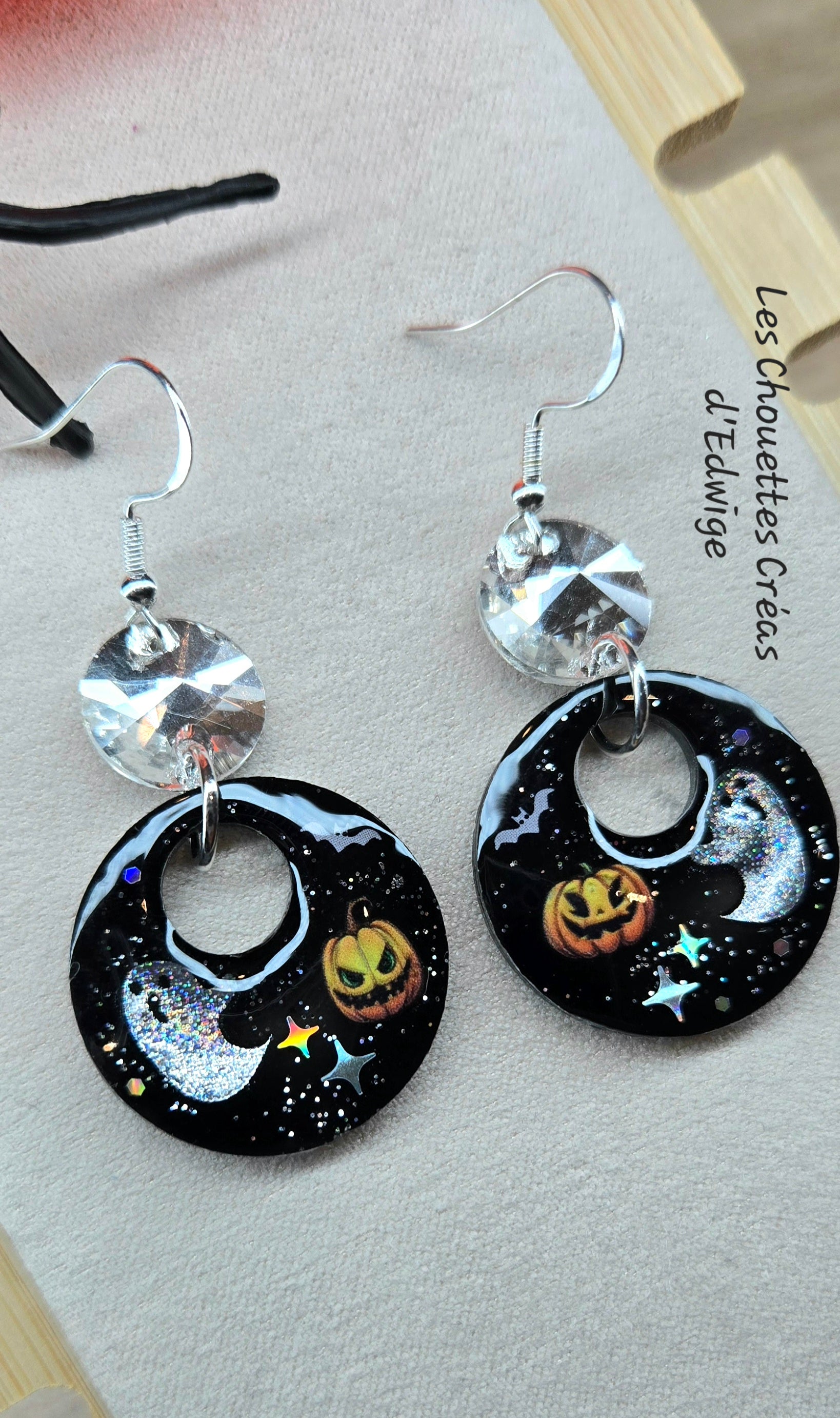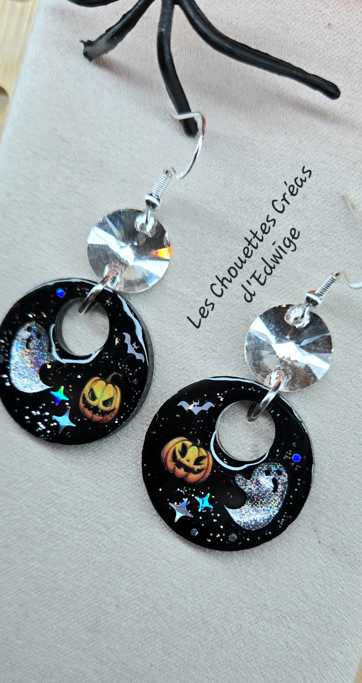- Créoles 100% résine avec paillettes et décors d'Halloween.